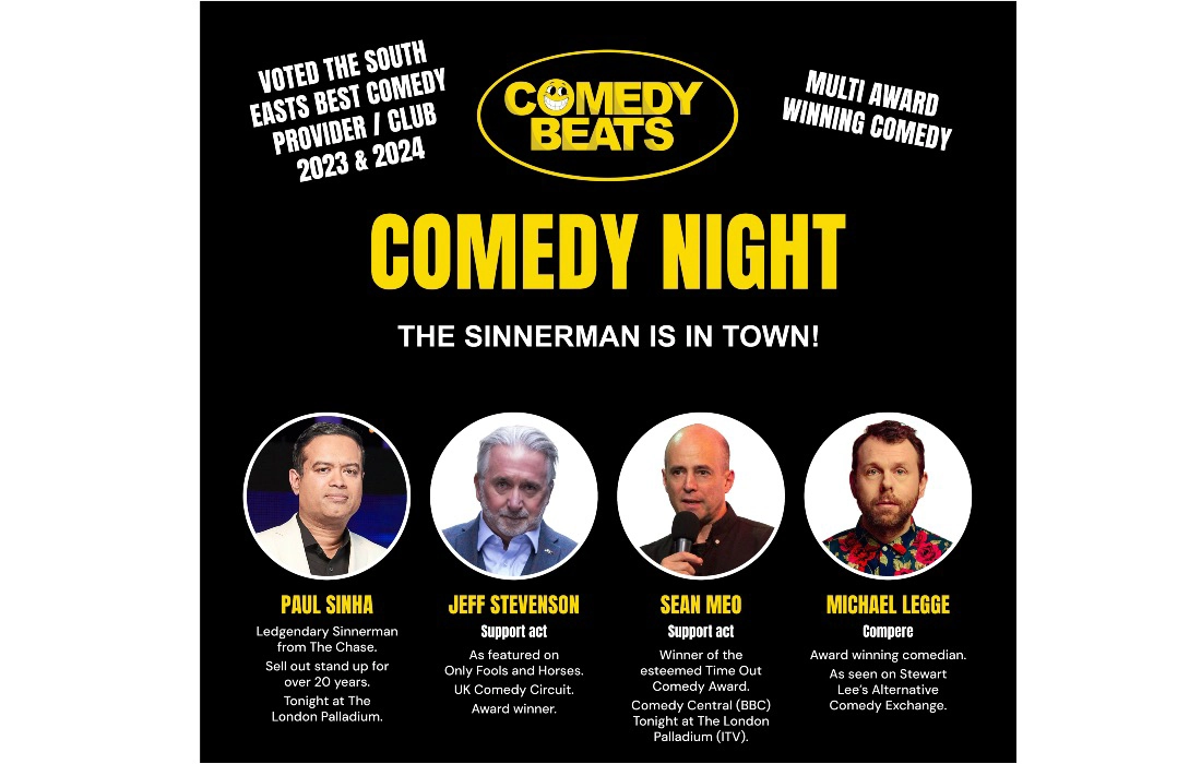 First up we have an evening of Live Comedy at the Corn Exchange, Devizes, Wiltshire, as Paul Sinha headlines on Friday 20th March.